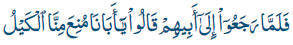 Cuando estuvieron ante José, éste arrimó a sí a sus padres y dijo: "¡Entrad seguros en Egipto, si Alá quiere!" |