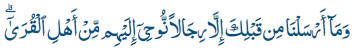 Antes de ti. no enviamos más que a hombres de las ciudades, a los que hicimos revelaciones.