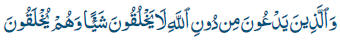 Aquéllos que ellos invocan en lugar de invocar a Alá, no crean nada, sino que ellos son creados. |
