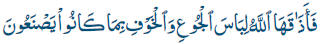 Alá, en castigo por su conducta, le dio a gustar la vestidura del hambre y del temor. |