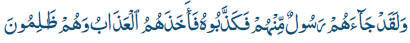 Ha venido a ellos un Enviado salido de ellos, pero le han desmentido y el castigo les ha sorprendido en su impiedad. |