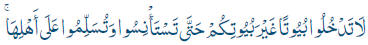 ¡Creyentes! No entréis en casa ajena sin daros a conocer y saludar a sus moradores.