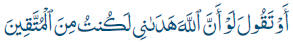 o diga: "¡Si Alá me hubiera dirigido, habría sido de los que Le temen!", |