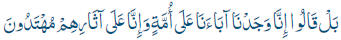¡Nada de eso! Dicen: "Encontramos a nuestros padres en una religión y, siguiendo sus huellas, estamos bien dirigidos". |