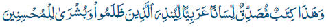 Y ésta es una Escritura que confirma, en lengua árabe, para advertir a los impíos y anunciar la buena nueva a quienes hacen el bien. |