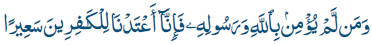 Quien no cree en Alá y en su Enviado... Hemos preparado para los infieles fuego de gehena. |