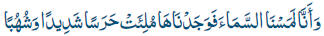 Y: 'Hemos palpado el cielo y lo hemos encontrado lleno de guardianes severos y de centellas'. |