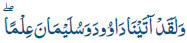 and they both said: "Praise be to Allah, Who has favored us above many of His servants who believe!" |