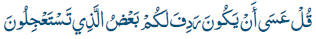 Say: "It may be that some of the events which ye wish to hasten on may be (close) in your pursuit!" |