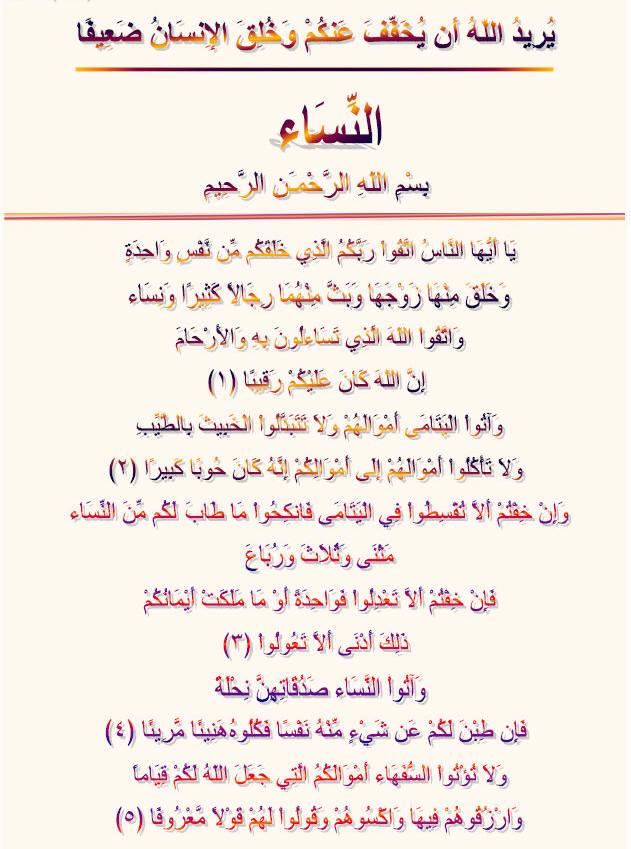 Colorful Arabic Text Surah Al Nisa |